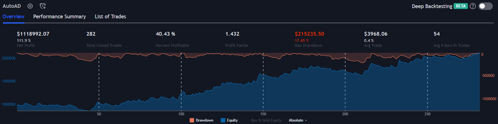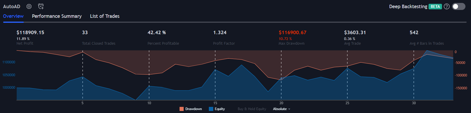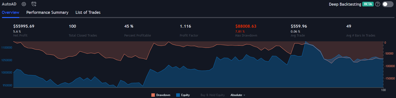 AutoAD is a tool for building automated trading strategies in TradingView. If you’re familiar with algo trading, please excuse all the disclaimers. If you are new to the world of quantitative trading, it is recommended that you do some research before designing your strategy. These are a few things we recommend understanding before running an automated trading strategy: