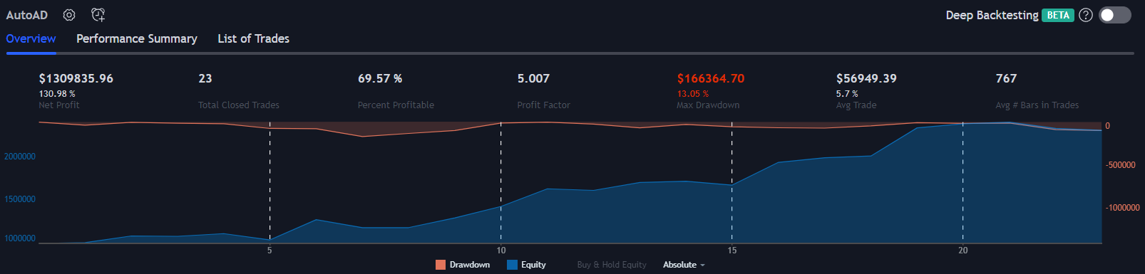 Below are some examples of ways you could use AutoAD. But first, here is an example backtest guilty of overfitting, survivorship bias, and compounding… So you don’t have to: