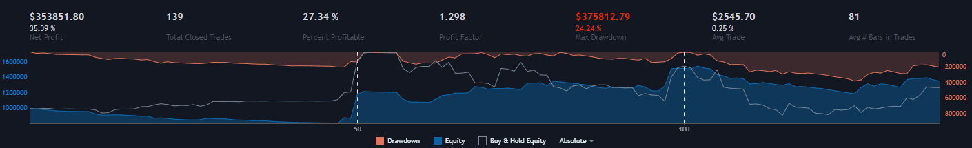 Due to the limitations of backtesting strategies in TradingView which are based upon ever shifting weights to any great scale, strategy design is for us even more important. Well funded automated trading firms have the ability to use supercomputers and machine learning to help make decisions using vast data sets. Oftentimes, they will not (or need to) understand why their strategy works. Retail traders do not have this luxury. Basically, your strategies should make sense.