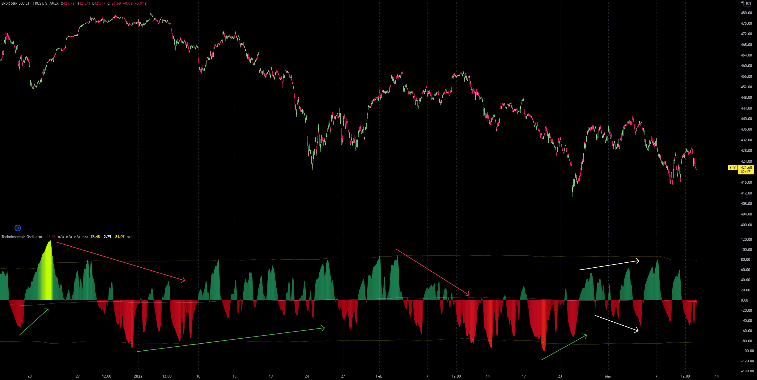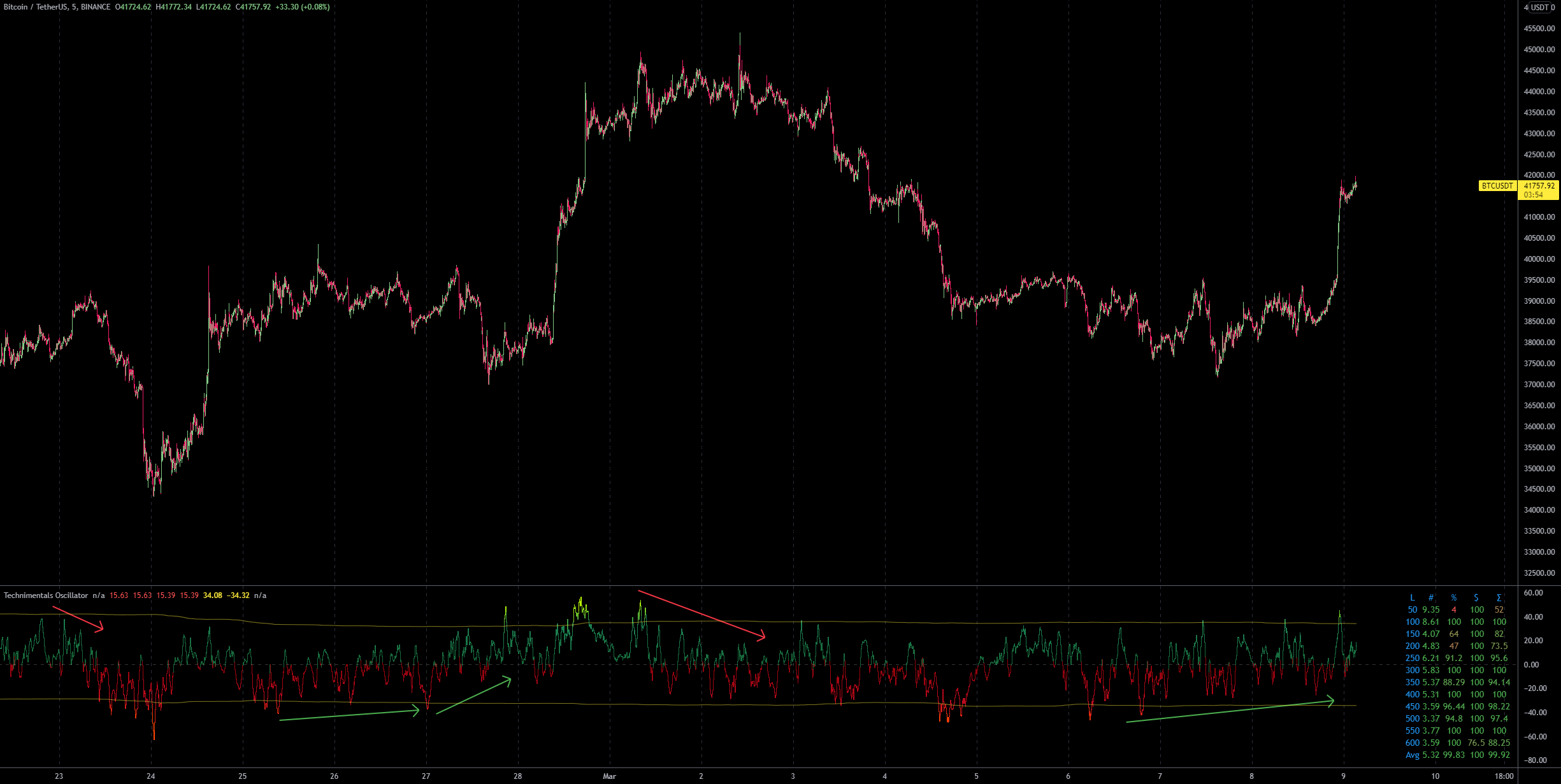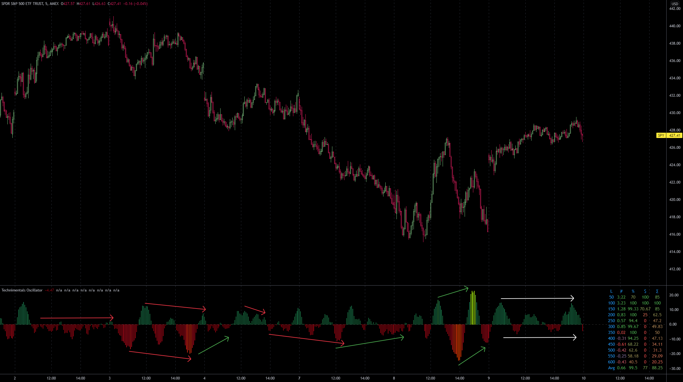 The Money Flow Oscillator is the core component of Technimentals Oscillator. It features 8 primary signals of various money flow sources which are then processed through a user defined series of iterative modules to output both long and short term trading signals.