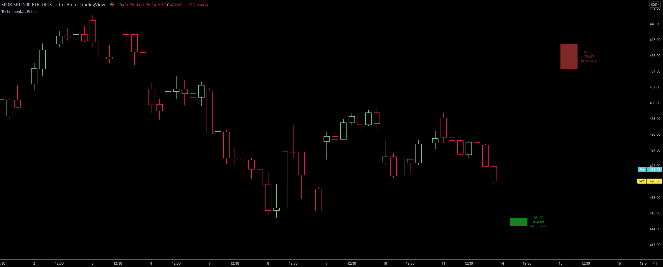 A classic use-case example of this would be for options traders as these zones can be used as support and resistance areas. For example, if you believe the daily RSI won’t reach below 30 before the end of the week, you can use this zone as another data point for deciding where to put your short strike.